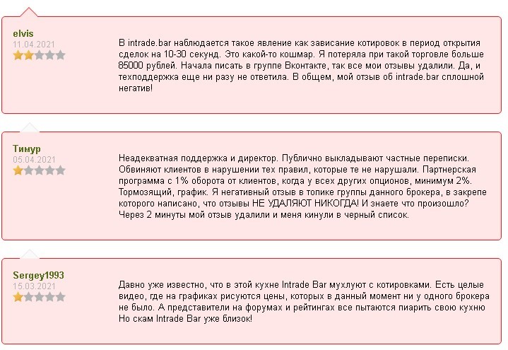 Изучив отзывы про деятельность брокера, мы отметили большое количество негатива, на который идет моментальная отработка от клиентов, фейки прям набрасываются и доказывают о честности брокера IntradeBar.