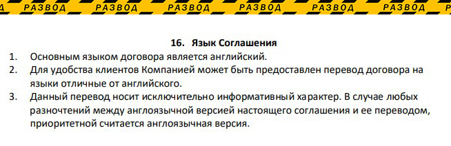 Сама компания зарегистрирована на Сейшельских островах и регулируется законодательством этого государства, как прямо заявлено в договоре.