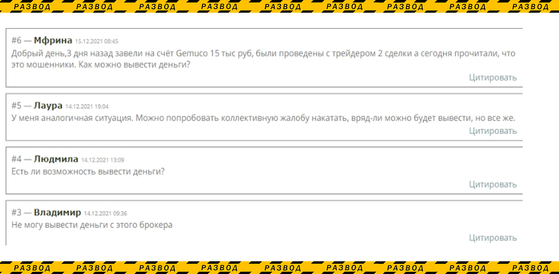 Отзывы «довольных» клиентов брокера Gemuco