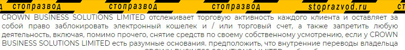 Хоть в сети большое количество липовых отзывов об этом проекте, нам удалось найти реальные отзывы пользователей о том, как работает брокер crownbusinesssolution.