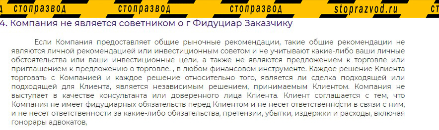 Указано, брокер недавно вышел на российский рынок, однако не удосужился перевести свои соглашения, что можно сделать за пару часов. Администрация проекта надеется, что из-за этого его не станут читать. Однако переводится элементарно с помощью встроенного переводчика и там содержится много пунктов которые против пользователей.