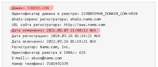 Домен основного веб-сайта torexo.com был первоначально зарегистрирован в 2018 году. Приватная регистрация последний раз обновлялась 7 мая 2021 года. Это произошло тогда, когда владельцы Torexo Finance перекупили и вступили во владение доменом. Это подтверждается поиском Wayback Machine, который показывает, что домен веб-сайта Torexo Finance был продан до его покупки в этом месяце.