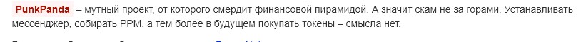 «Революционный мессенджер» PunkPanda создан несколькими программистами из США. В 2020 презентовали идею создать мессенджер, на котором каждый сможет зарабатывать. Разумеется, такая идея не состоится без привязки к криптовалюте. Сейчас никакой новый скам проект не обходится без криптовалют. Даже Паша Дуров пытался работать в этом направлении, и все помнят что из этого вышло.