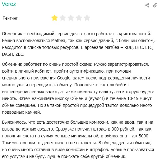 В интернете полно отзывов с жалобами клиентов на ужасную работу сервиса Matbea. Но также много и положительных. Первая половина из которых куплена самим обменником. Вторая половина те пользователи, которых «пронесло». Ведь Matbea выборочно кидает клиентов. Дабы не привлекать внимания.