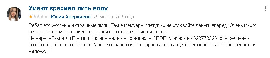 Очень много негативных комментариев о кэпитал протект было удалено. Не верьте этим «юристам». Проверкой деятельности «Капитал Протект» занимается ОБЭП.