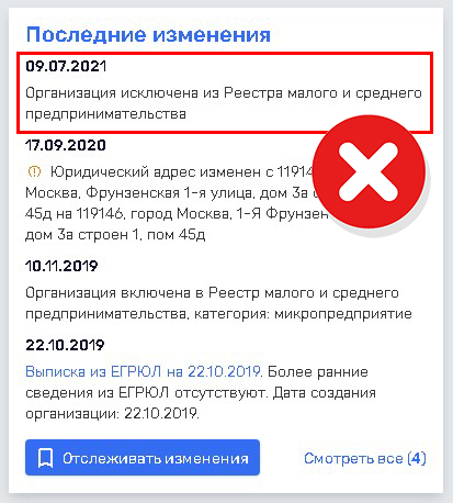Исключение ООО «Юрист-Групп» из реестра субъектов МСП