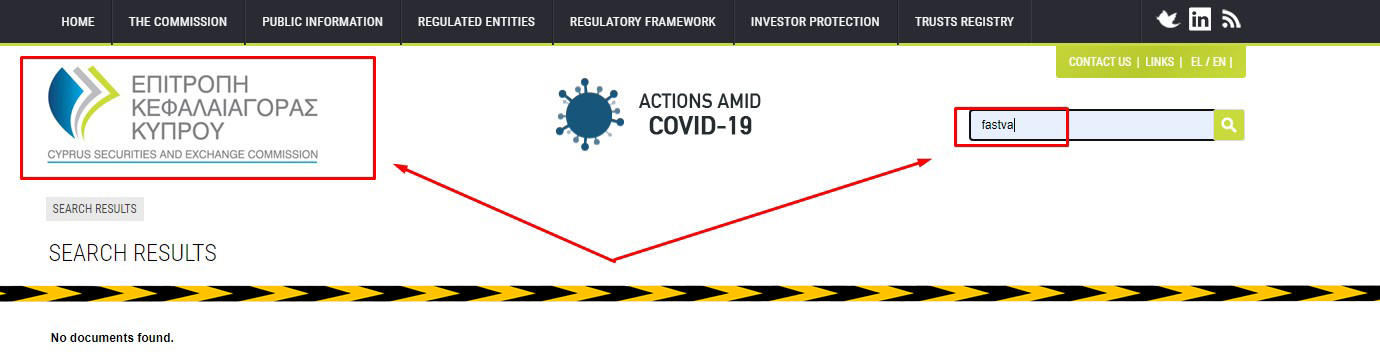 Также в подвале сайта указан ещё одни номер лицензии, на этот раз от Кипрского регулятора IFSC. Однако и на его сайте вы не увидите упоминания о брокере fastva.