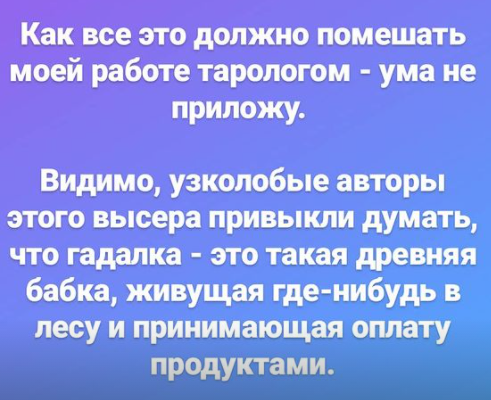 Интересно Зойка хоть знает что изначально карты Таро были придуманы как игральные? И никакой реальной силы они не имеют. Чисто на хайпе вырулили в 17 веке