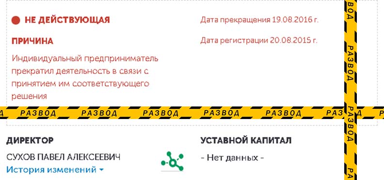 Компания предпринимателя еще с далекого 2016 года является недействительной, а сведения о Павле Алексеевиче больше никакие не упоминаются. Вы действительно готовы подписать Договор и отправить деньги на карту неизвестного?