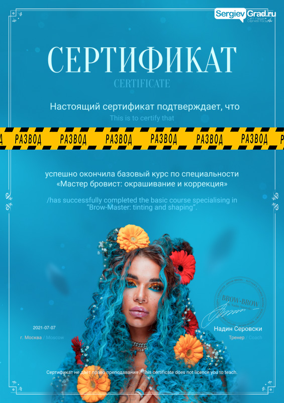 Сертификат, предоставляемый Надин, является красивой бумажкой, которая ничего не значит. Она сделана, чтобы придать солидности курсу.