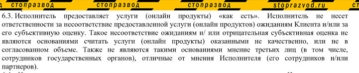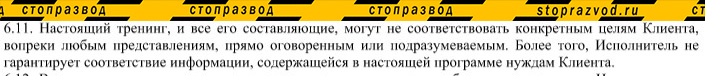 Указано, организаторы не несут ответственности за ожидания относительно продукта, однако Надин сама строили эти ожидания рассказывая небылицы про курсы.