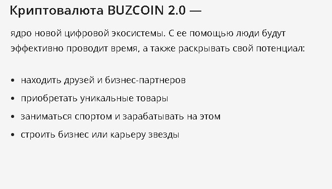 На данный момент планы остаются планами, а вот смогут ли разработчики внедрить их в реальность — вопрос времени. Популярность Бузовой не вечна, а это даёт повод задуматься о серьёзности настроя разработчиков. Отыскать официальный сайт проекта совсем не просто. По запросам «BuzCoin сайт» Вы найдете только статьи из разного рода СМИ или мошеннические копии официального сайта. Создатели описывают этот проект как маркетплейс и коммуникационную платформу. По заявлениям команды в него будет входить все, что есть на рынке современных технологий, все самые крупные и денежные ниши.