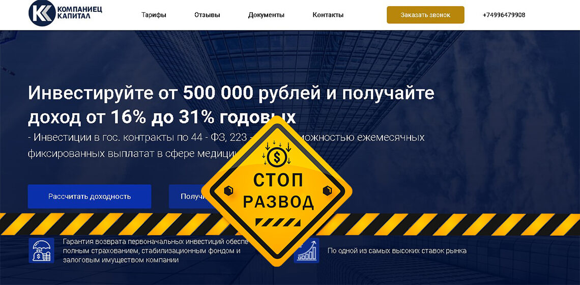 Инвестировать деньги можно в совершенно разные отрасли. Фондовые биржи, банковские депозиты, стартапы, облигации, недвижимость. К этому списку так же можно отнести вклады в медицинские проекты. Именно такой вид инвестиций нам предлагает Компаниец Капитал. Начать предлагают с 500 000, а доходность 16% – 31% годовых. Абсолютно нормальные требования и показатели доходности. На первый взгляд инвестиционная компания кажется нормально, ведь ничего заоблачного не обещают, но и тут не все так просто. Есть подозрения, что это очередной скам проект и мы объясним почему.