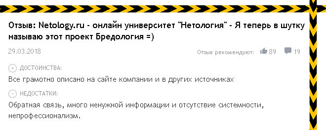 Спасибо большое! Чуть не оформила оплату на курсы SMM-щика, Мне писала девушка, якобы выпускница курсов, в красках расписывала преимущества Нетологии, а особенно то, что выдают сертификат по окончанию. Для меня это огромный плюс, но видимо Бог смиловался и мне вовремя на глаза попались вы. Спасибо еще раз!