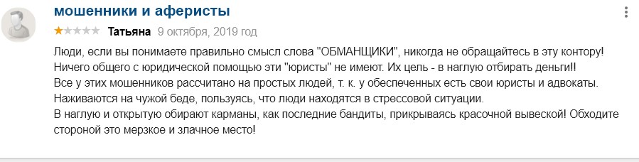 И тут развод! Я думал хотя бы юристы, последняя опора от этих мошенников ведет себя честно.. но и тут придумали как нажиться на простых людях. Чтоб этот ваш правовой корабль утонул! Достало что на любую сферу можно найти отрицательный отзыв. Спасибо стоп разводу