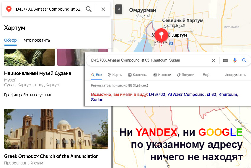 Впрочем, денег не выделили даже на номинальную регистрацию компании. Во-первых, адрес, указанный на сайте AssetG.Finance фейковый. Забейте в поисковик D43/703, Alnasar Compound, st 63, Khartoum, Sudan и Яндекс вам выдаст результат. Национальный музей Судана и Греческая православная церковь. Уж не в церкви ли AssetG.Finance арендуют офис? А во-вторых, зачем заморачиваться? Безграмотный пипл и так «хавает». Мало кто из потенциальных клиентов будет проводить аудит компании. Но ведь Вы не из таких лохов, правда?