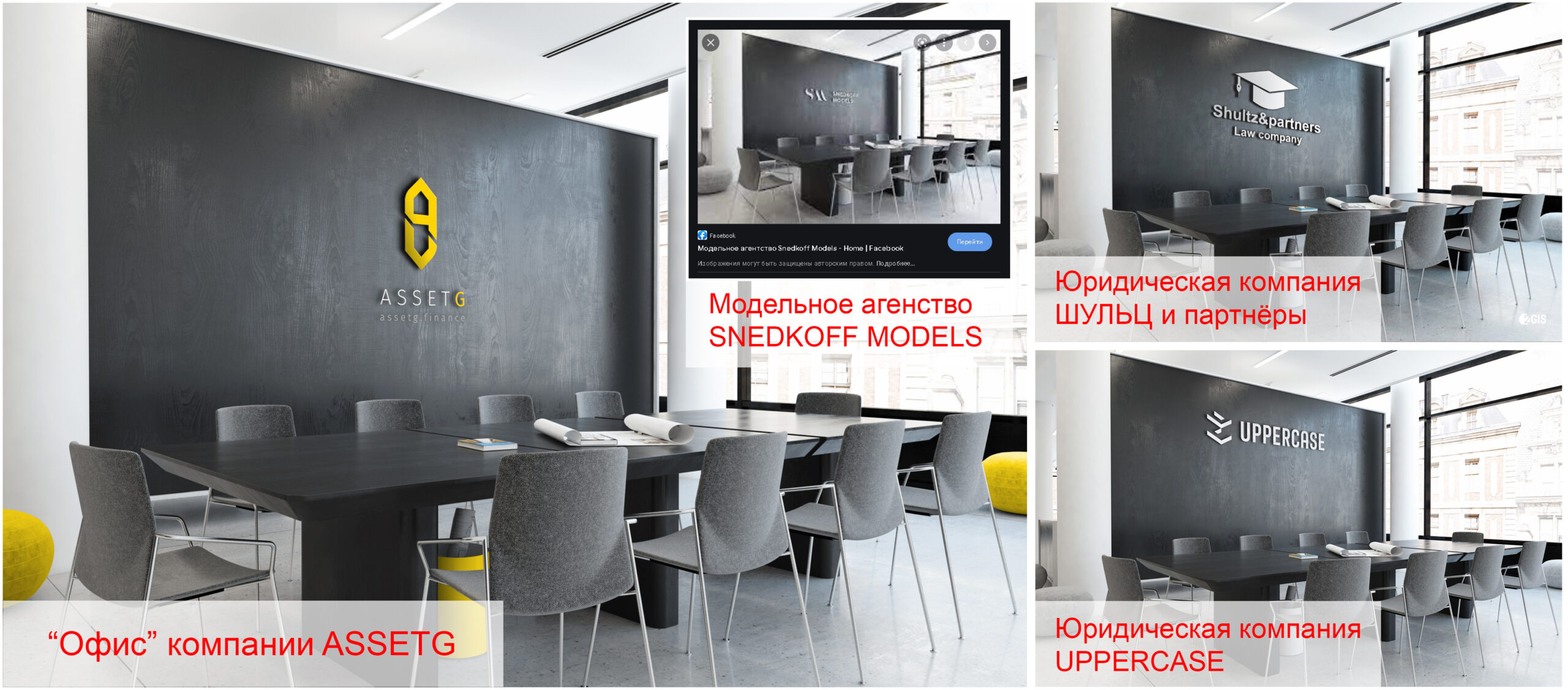 Для тех, кто не понял. Фото офиса на сайте компании AssetG.Finance — это мокап. Редактируемый в Фотошопе шаблон, куда легко вставляются любые нужные данные. Этот же шаблон используют многие другие компании. На самом деле офис AssetG не существует. Аналогичная ситуация и с другими товарами, маркированными логотипами компании: футболки, пакеты и даже автомобиль. Всё это ФОТОШОП. Не сомневайтесь.