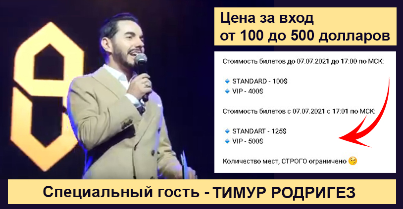 Чтобы окончательно сразить всех наповал, можно пригласить какую-нибудь звезду. Тимур Родригез подойдёт. Не переживайте, его гонорар окупится. Ведь билеты на открытие AssetG.Finance продает по 100 — 500 долларов. А вы думали за чей счёт банкет?