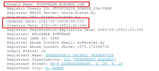 На сайте компании утверждается что компания работает с 2017 года. Домен сайта Firstrade Academy зарегистрирован всего в 2020