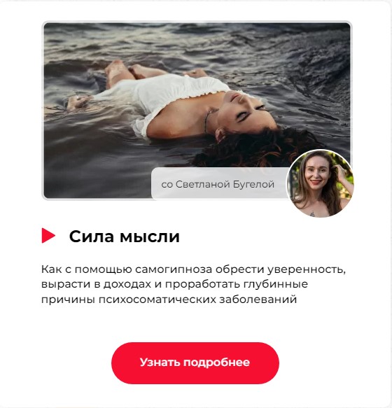Человека, решившего пройти курс ждет увлекательное путешествие, в ходе которого он перепрограммируется на подсознательном уровне. Практики, упражнения, общение со специалистами и единомышленниками, это пойдет на пользу каждому кто готов меняться.