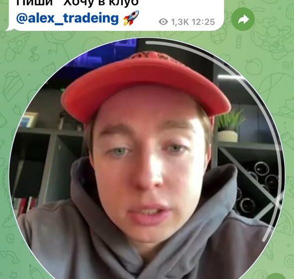 Вы проходите по ссылки в видео и оказываетесь в телеграмме, где не указан не номер телефона, а просто какой-то Александр (@alex_tradeing), который сделает тебя богатым, если ты отправишь ему хотя бы полторашку (1500р.)
