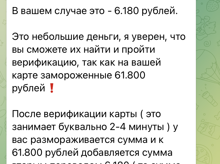 @alex_tradeing. В профиле этого человека было написано 1500 переводишь , а утром он выплачивает прибыл наступило утро ни денег ни прибыли .Только началось самое интересное что надо перевести ещё 6000 чтобы якобы пройти верификацию так как счёт заморозили.