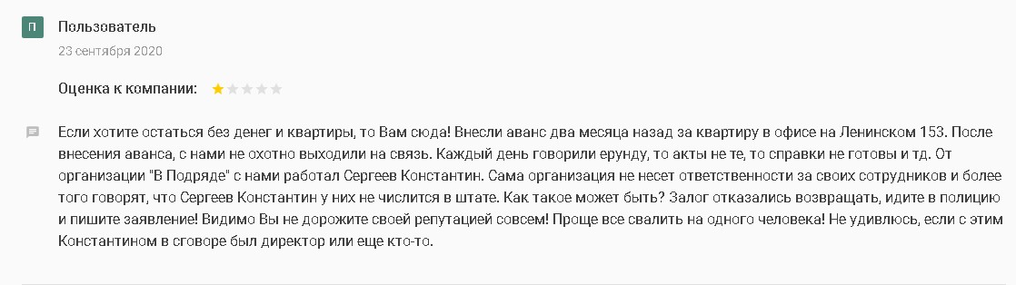 — «ВПОДРЯДЕ» накручивают положительные отзывы и умело скрывают истинную деятельность;