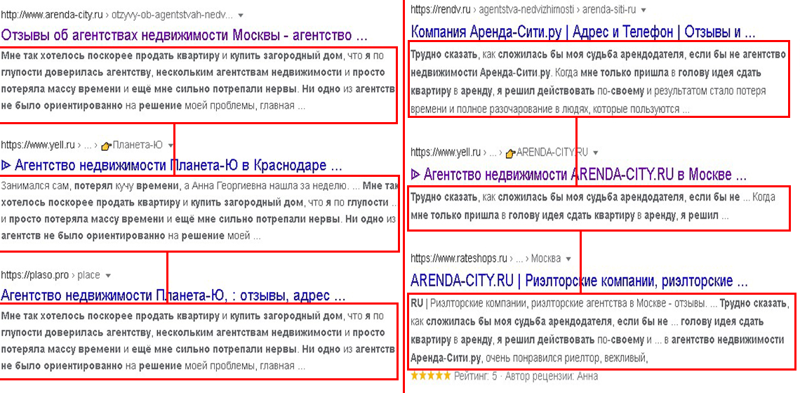 Сказать, как работает компания сложно, потому что отзывов реальных клиентов нет. Маркетологи шарашки Arenda-cyty самостоятельно пишут отзывы, причем сильно не задумываясь над содержимым. Отзывы на официальном сайте arenda-city.ru и на многих других идентичны. То есть одни и те же отзывы от якобы разных людей висят на разных сайтах. Это легко проверить. Копируем любой случайный отзыв, хоть с середины и вставляем в поиск google.