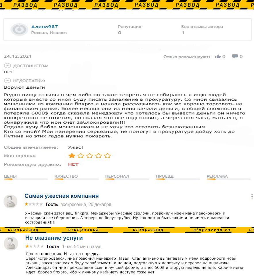 Как видно из отзывов все клиенты остаются недовольными сотрудничая с finxpro