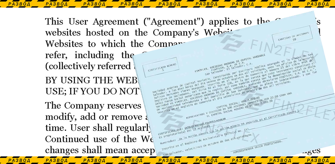 В разделе ответов на вопросы имеется информация о том, что блокировка может последовать после нарушений соглашения. Откроем же это соглашение, которое на английском! Благо есть переводчик, который нам позволяет узнать, что Fin2flex оставляет за собой право выбирать юрисдикции для работы и может ограничивать или запрещать предоставление услуг в странах на свое усмотрение. То есть с нашего рынка они могут очень красиво слиться под данным предлогом. На этом не останавливаемся: традиционный отказ от ответственности. Регистрация у Fin2flex на Сальвадоре. Уверенны слету вы не покажите на карте эту страну.