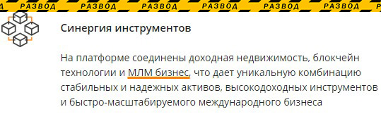 Вы не просто инвестируете деньги в недвижимость, а отдаете деньги в токинезированую недвижимость и покупаете криптовалюту. Проект обещает вам рост этой валюты в ближайшее время.